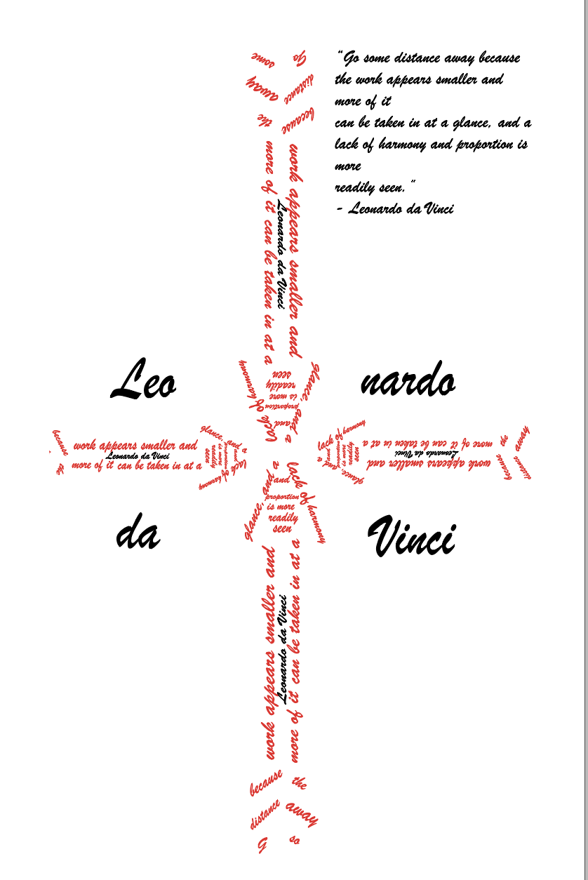 - “Go some distance away because the work appears smaller and more of it can be taken in at a glance, and a lack of harmony and proportion is more readily seen.” – Leonardo da Vinci