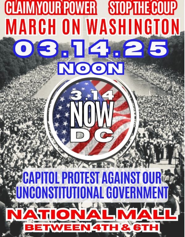 Protesters are calling for “the immediate removal of this illegal administration from power by any and all constitutional means,” according to the website for the 3.14 Now D.C. movement, organized by 14th Now.